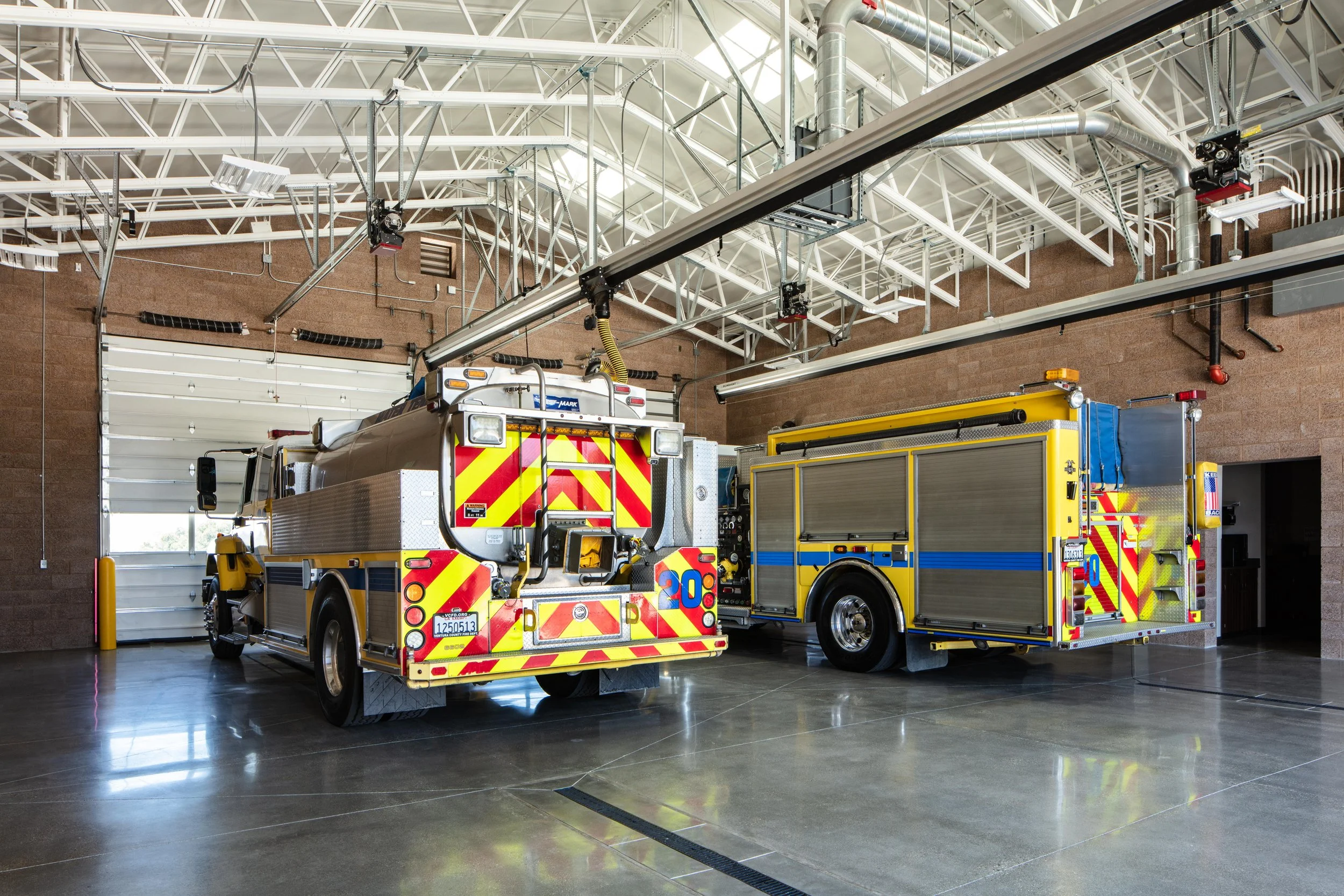The $7.3 million new station is approximately 8500 square feet – about four times the size of the existing station from 1959. VCFD was extremely conscientious about the large new building in a relatively rural area between the small cities of Ojai and Santa Paula and requested that the design fit in with the residential nature of the nearby community.