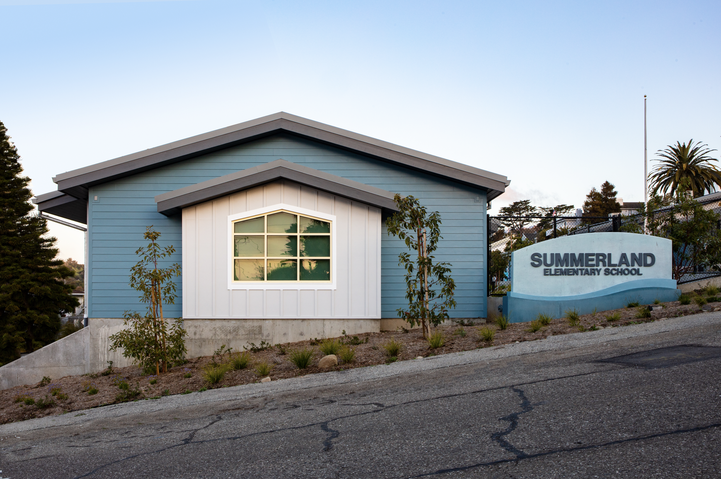 Located on a hillside in the coastal community of Summerland, California, the initial site of Summerland Elementary School was a collection of portable classroom buildings over 35 years old. The hillside site provided spectacular views and natural ventilation opportunities from the coastal breezes, allowing the design not to require HVAC cooling.
