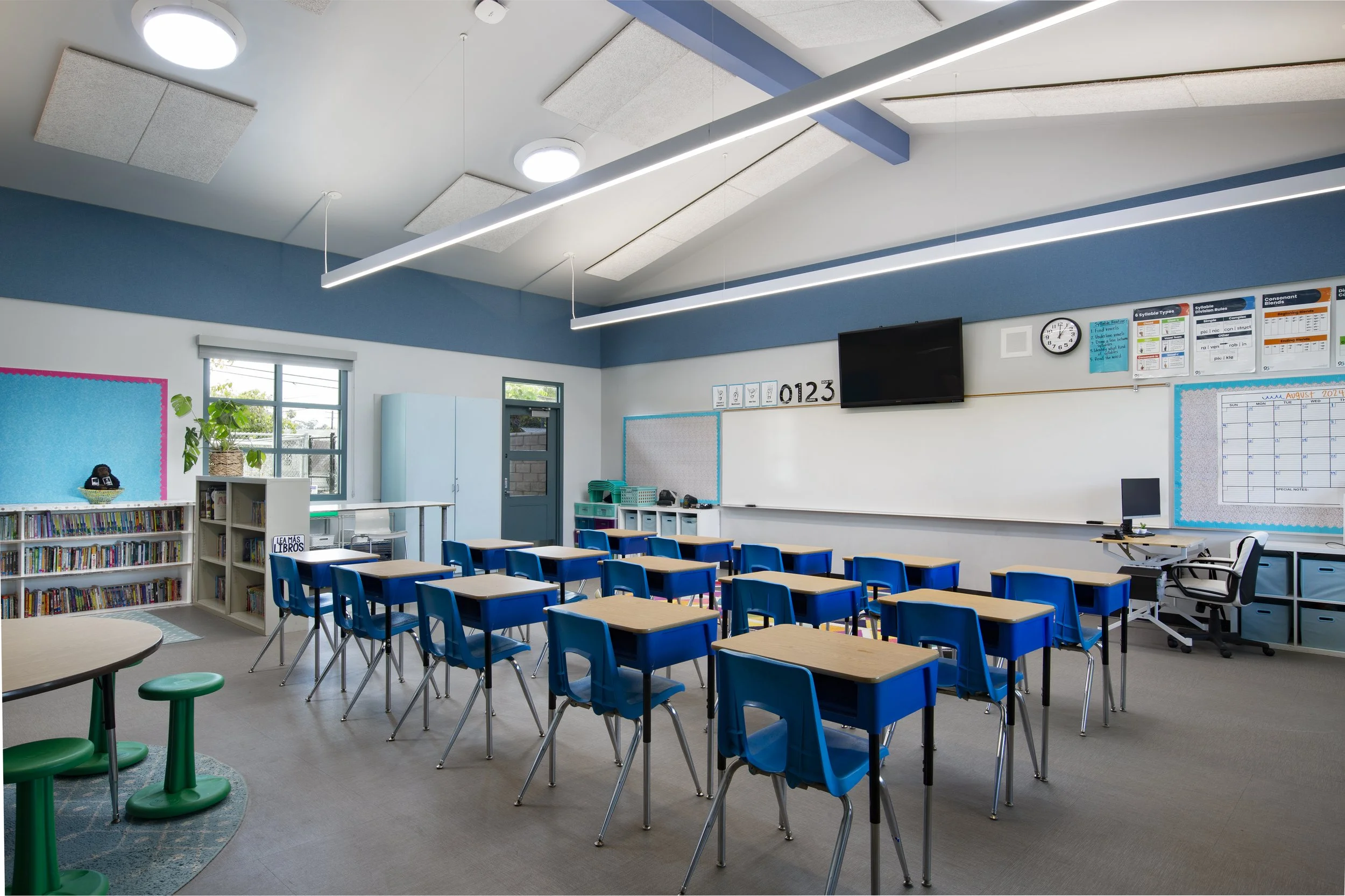 Attention was spent on using as much natural light as possible by specifying dimming skylights for all classrooms. The addition of air conditioning was incorporated for student and staff comfort.